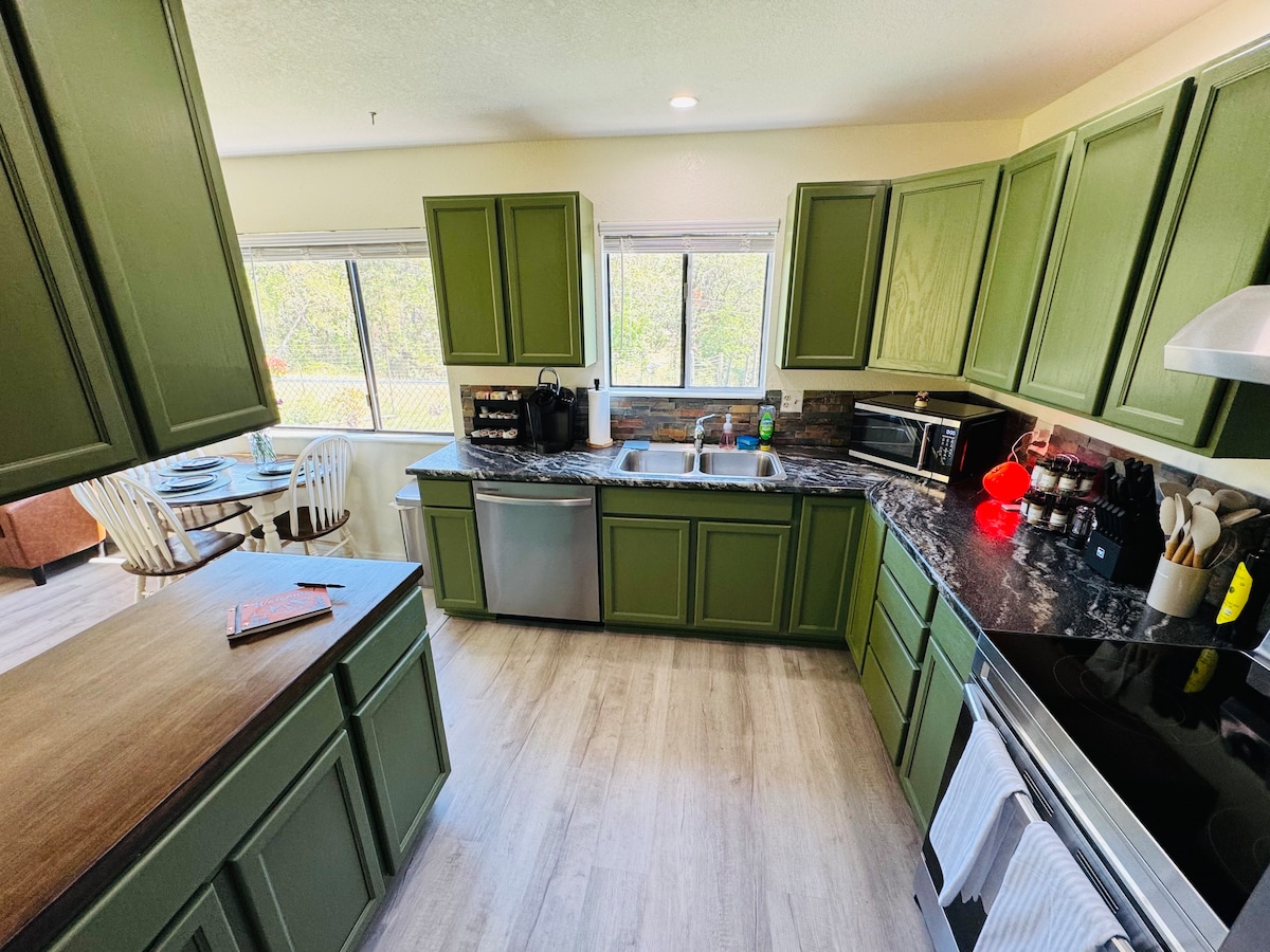 Romslig, tre soverom, to bad. Hovedsoverommet har en kingsize-seng. De to andre rommene har queen-senger. Det ekstra bonusrommet har to barnesenger, en full sovesofa og en queen-size plattformseng. Hjemmet er fullt utstyrt med ALT du trenger. INGEN KJÆLEDYR og RØYKING inne i hjemmet, spesielt marihuana. Det blir et gebyr på 100–200 USD hvis denne regelen brytes. FESTER OG ARRANGEMENTER er ikke tillatt inntil videre. Airbnb har et globalt forbud på ikke mer enn 16 personer tillatt på eiendommen. Utendørs kameraer i bruk.