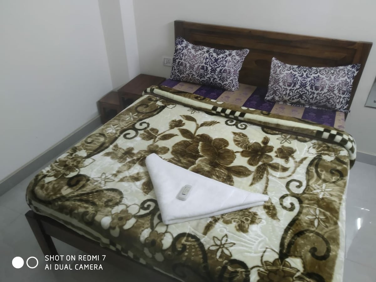 Velkommen til Sadharan Homestays! Vår elegante 4BHK-leilighet i Kailash Hills tilbyr et komfortabelt opphold, perfekt for fredelige familie- og vennlige sammenkomster. Høye fester er ikke tillatt. Leiligheten ligger i første etasje uten heis, og vårt døgnåpne personale hjelper deg med bagasje og mer. Nyt godt av gratis kokketjeneste for hjemmelige måltider. Alle de fire soverommene har tilknyttede bad, tre med balkong. Leiligheten er luftkondisjonert med fem varme- og kjøleapparater for komfort under alle årstider. Spar 18 % på bedriftsbestillinger med GST-faktura!