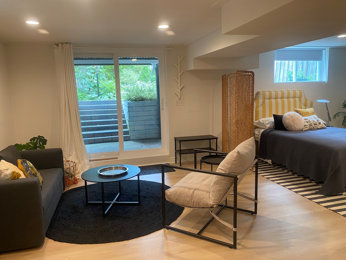 Bo på et fredelig sted, få minutter fra all action! Lys, åpen studioleilighet som ligger ved Yonge og Finch. 5–10 minutters gange til T-banen og butikker og restauranter. Egen inngang gjennom bakgården til huset, med soverom, stue og kjøkken i åpen planløsning. Egen vaskerom og bad med dusj. Dette er en nyoppusset kjellersuite med store vinduer, høyt tak og en morsom, ren og moderne design. Perfekt for en som reiser alene, et par, eller bruk den uttrekkbare sovesofaen for å inkludere en tredje.