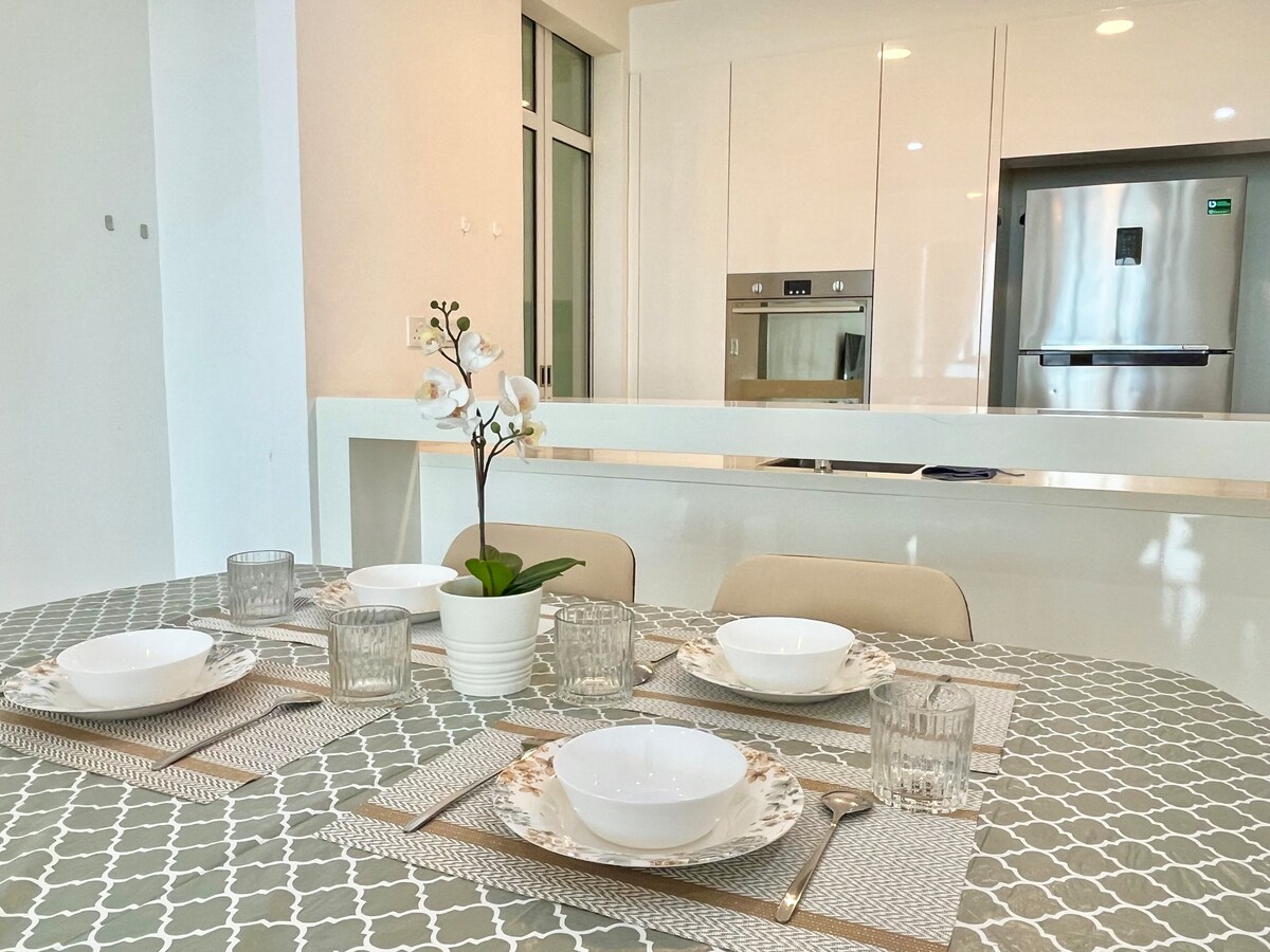 Hotellopphold hjemme Denne fantastiske suiten ligger over kjøpesenteret med perfekt utsikt over marinaen og sjøen. Unngå forstyrrelser fra første etasje ved å bo i øverste etasje, som er 6. etasje. Et eksklusivt sted for fritid og rekreasjon, med en blanding av butikker, restauranter og underholdning. Stedet passer for familier, vennegjenger og par. Praktisk tilgang til turistattraksjoner, internasjonal skole. Hentested for sjåførtjeneste kun ved lobbyinngangen Feriehjem er perfekt her!!!