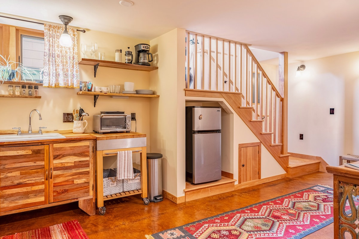 Bygget for å føles som et lite snev av luksus, med den sjarmerende og kvaliteten på et håndverkshjem. Dette stedet er et ekte sneak-away med et badekar for to personer, marmordusj, king tempurpedisk seng og et fullt utstyrt kjøkken. Denne åpne studioleiligheten har 15 fot tak som gir rikelig sollys og en stor, lett følelse. Dette huset ble designet og bygget av mine venner, så ingen detaljer blir oversett eller utilsiktet. Dette var vårt kjærlighetsarbeid i et år, og jeg gleder meg til å nå kunne dele det.