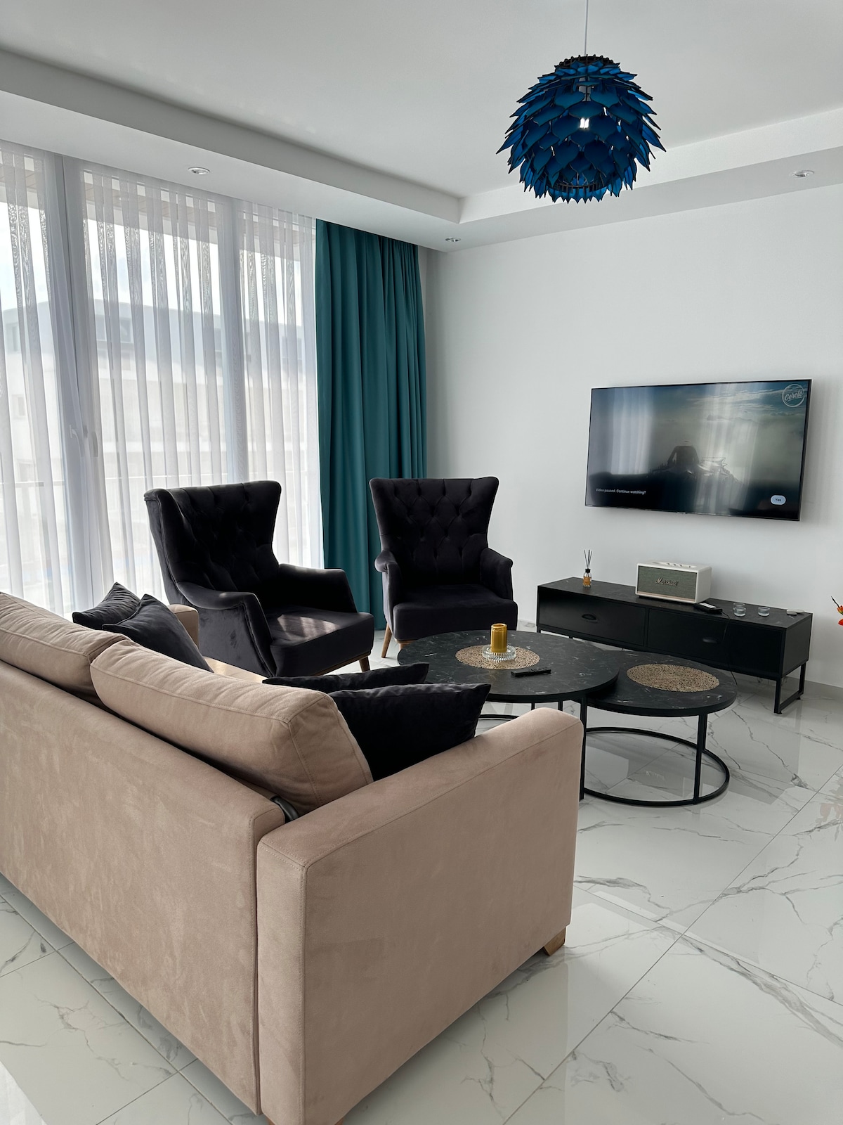 Helt ny luksusleilighet med to soverom og panoramautsikt over havet på Nord-Kypros, perfekt for familier og par som søker komfort og stil. Beliggende i et trygt, eksklusivt kompleks med døgnåpen sikkerhet, luksuriøs heis, evighetsbasseng på taket, treningssenter, badstue og minimarked på stedet. Gangavstand til sandstrand og Othello slott. Raskt trådløst nettverk, fullt klimaanlegg, moderne fullt utstyrt kjøkken, vaskemaskin/tørketrommel. Gratis parkering og lading av elbil. Stille, trygt område i nærheten av uberørte Karpaz-strender.