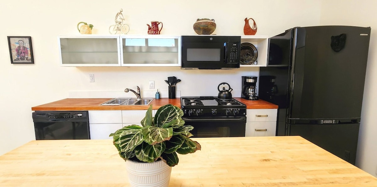 Denne moderne studioleiligheten har en overflod av naturlig lys, kunst og utsikt som viser den pulserende energien i bybildet. Beliggende i hjertet av Albuquerque, gå til sentrum på få minutter etter å ha gått ut av inngangsdøren. Den historiske «gamlebyen» ligger en kort biltur unna, med praktisk tilgang til motorveien i nærheten. Unn deg Albuquerques unike livsstil i sentrum med lokal mat, brygg, kaffe og underholdning. Vi designer med gjesten vår i tankene. Dette loftsleiligheten er fullastet og klar for oppholdet ditt!
