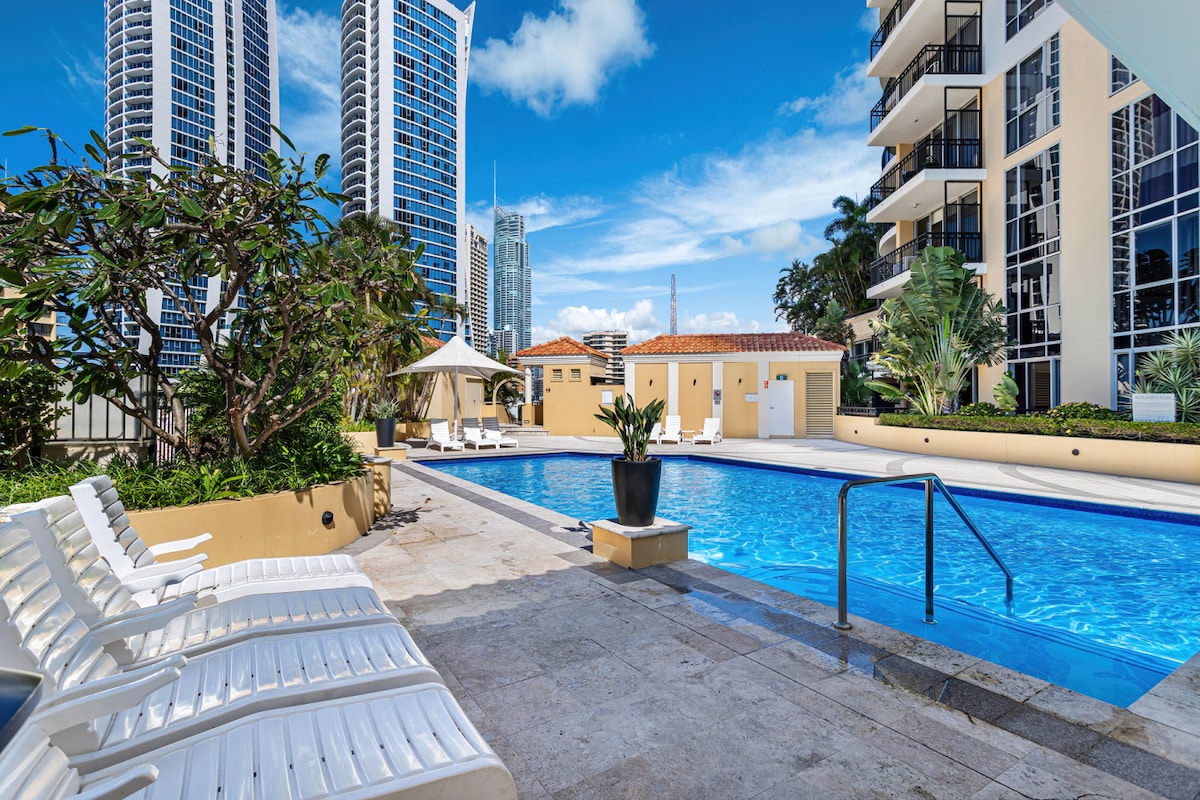 Enormt romslig 4 soverom 260 m2 luksus Skyhome i hjertet av Broadbeach 150 m til strand, kasino, konferansesenter. Gå til Woolies/butikker og lettbane, restauranter og strand. Fem minutters gange til Pac Fair Shops, Foxtel og trådløst nettverk. Et feriested med alle fasiliteter, inkludert underholdningsområder, grill, Teppanyaki, basseng/biljardrom og kino. To utendørsbassenger og bassengene er det et soldekk. Gå til noen av de beste restaurantene på Gullkysten. barnestol og barneseng. 270 grader fantastisk utsikt. Stor 85 tommers TV.