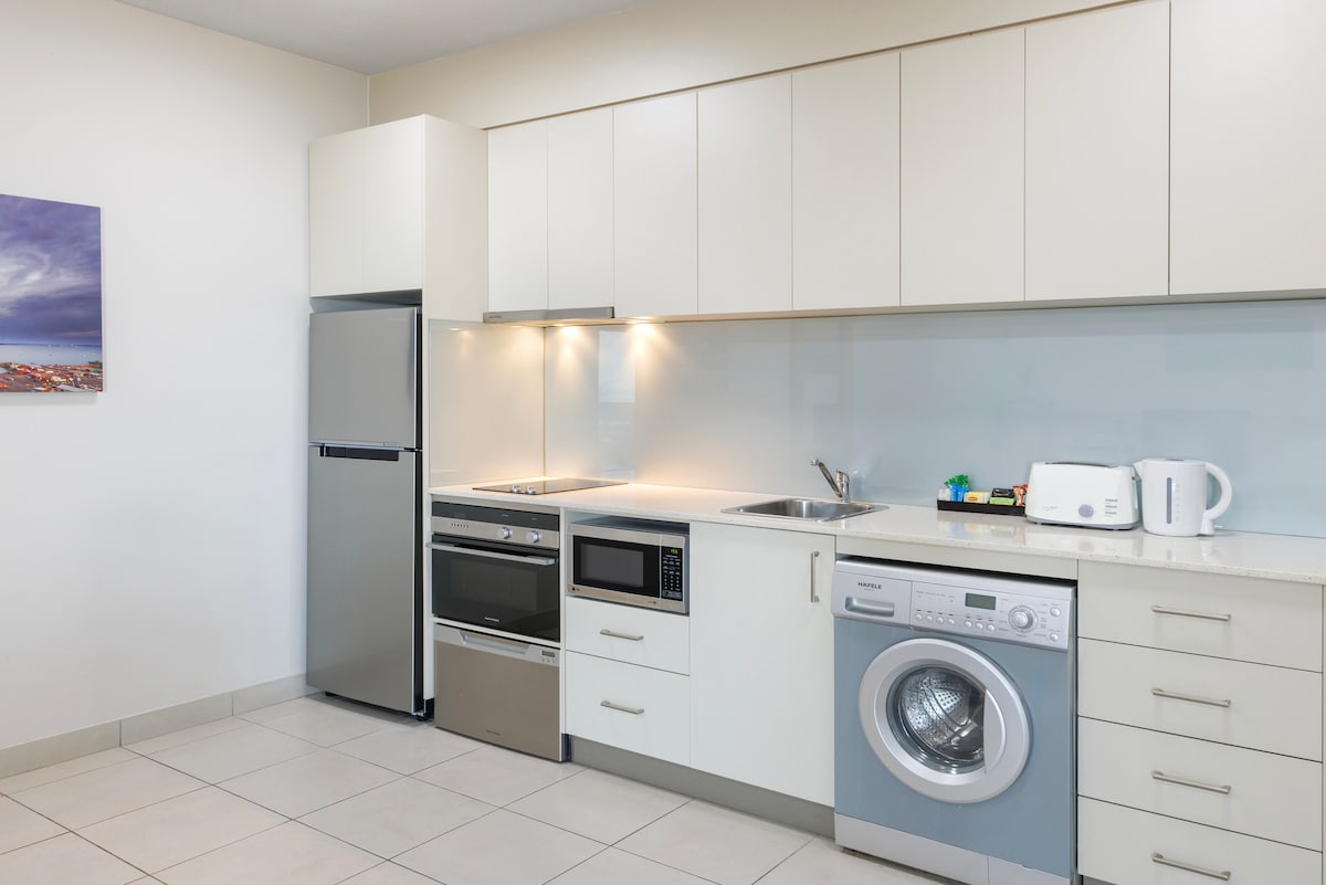 Vår romslige familieleilighet med 2 soverom er perfekt for en familie på 2 voksne og 2 barn, eller 3 gjester som trenger individuelt sengetøy (1 queensize-seng og 2 enkeltsenger). Med familievennlige fasiliteter som fullt utstyrt kjøkken og klesvask pluss tilgang til utendørsbassengområdet. Leilighetene våre har en perfekt beliggenhet, i nærheten av shopping og restauranter. Vi ser frem til å se deg snart på Metro Advance Apartments & Hotel.