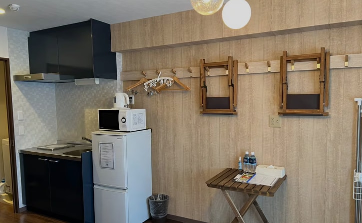 Rommet er romslig, moderne design med lyse tretoner og overveldende naturlig lys. Stor dobbeltseng med beige sengetøy, som gir en følelse av avslapning og luksus. Rommet er utstyrt med en myk sofa, et kompakt skrivebord, en innebygd Netflix-projektor og dekorative planter, noe som skaper et livlig og luftig rom. Det unike høydepunktet er den avslappende hengekøyen på rommet – ideell for lesing eller hvile. Dette varme, komfortable stedet egner seg både for ferie og arbeid.