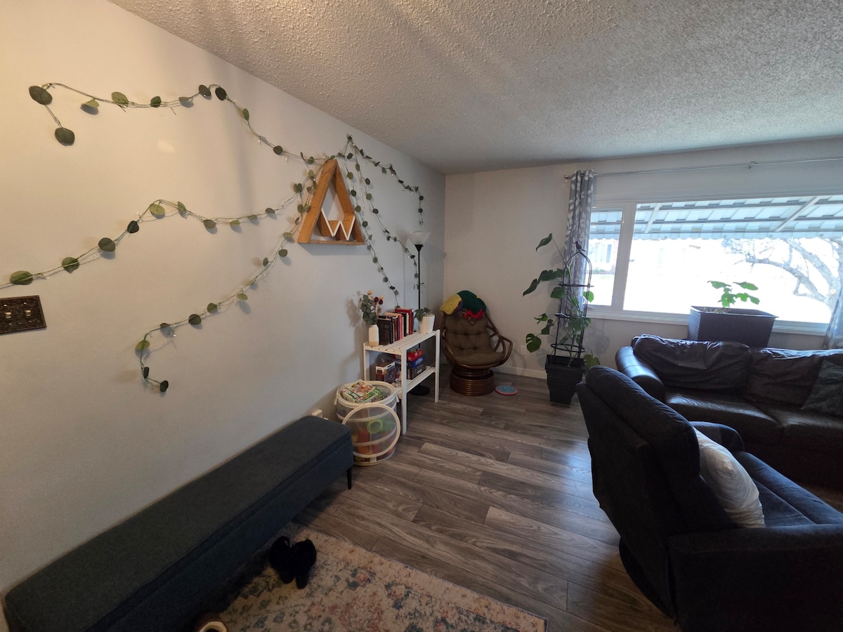 Moderne, koselig og kuratert for komfort – dette parets tilfluktssted er perfekt for treningsjenter, plantepappaer eller alle som elsker et stilig sted (vår katt Loki godkjente personlig stemningen). Bare ti minutter fra Calgary sentrum og flyplassen, med Nose Hill Park en rask joggetur unna. Hjemmet vårt ligger på ½ hektar – utforsk gjerne! Ute på baksiden: en hengekøye, en slakkline og en bålplass som gløder i skumringen. Kommer snart: en kjeller med kaldt basseng, badstue og boblebad. Følg med!