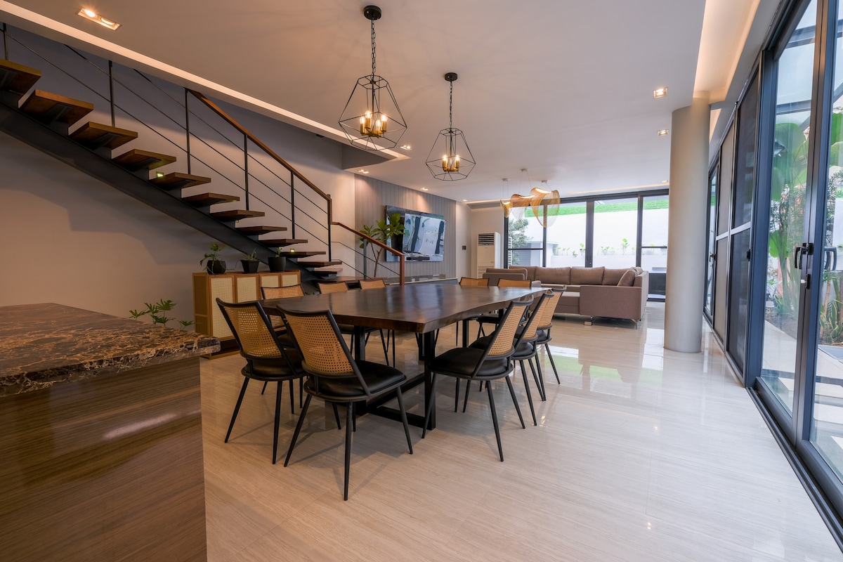 Checkout before 11AM Good for 20 adults Soak up the modern charm of this newly constructed villa! Located only 40 minutes away from Metro Manila, this luxurious 1 hectare property is perfect for big families & groups that want to get away from the traffic & pollution of the city without the long travel time! Take a dip in our swimming pool, complete with jacuzzi & kiddie pool & enjoy other activities like karaoke, darts, bike trail & much more, all while taking in the fresh countryside breeze!