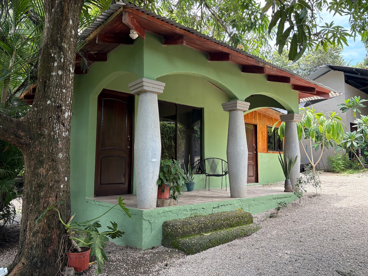 Dette lyse, luftige hjemmet i teak ligger bare 50 meter fra stranden, nær hjertet av Sámara, som deler den trefylte hagen med aper, fugler og leguaner. Flott utsikt over naturen og havlyder. Dette luftige huset har et åpent kjøkken - stue med mange kunstneriske, originale detaljer i lokal resirkulert skog; terrasse, uteservering, hengekøye og hage. Du kan gå hvor som helst på minutter og gå barbeint til stranden! MERK: Vi har IKKE aircondition, og noen vinduer har SKJERMER (ikke glass) for mer luftstrøm!