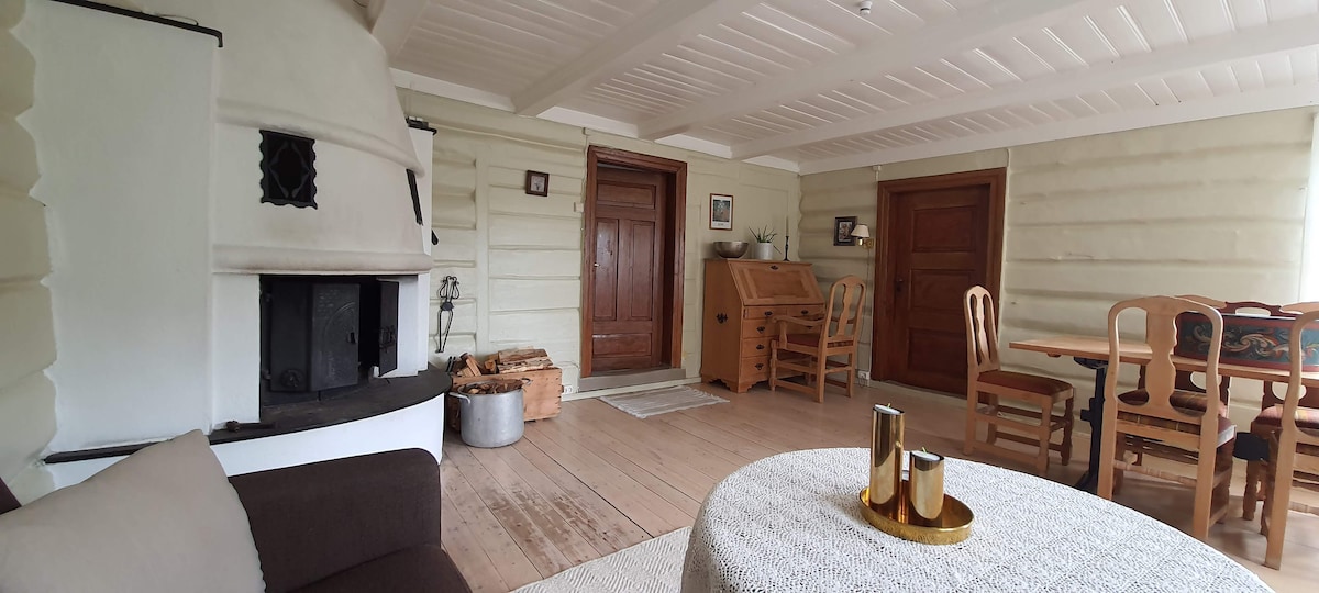 Slapp av sammen med hele familien i en gammel og lun tømmerstue på et idyllisk og fredelig gårdstun. Kos med dyra, hent ferske egg og nyt utsikten!