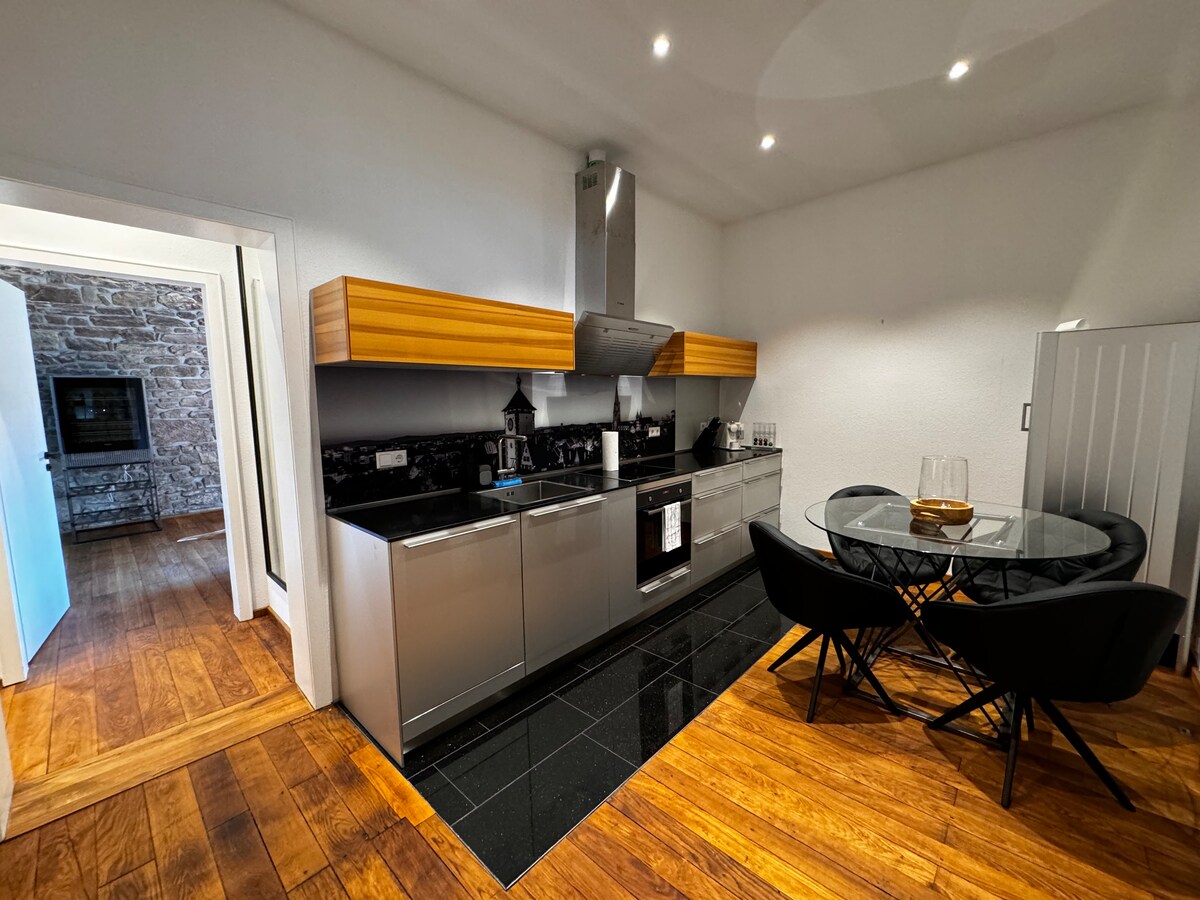 Alte Tischlerei er en individuell leilighet (ca. 70 kvadratmeter) for naturelskere, individualister, matlagingsentusiaster, hundeelskere eller … Den er utstyrt med et kjøkken, 80 cm induksjonsfelt, konveksjonsovn og dampovn, kjøleskap/fryser samt et bad med en veldig stor dusj og separat toalett. Området er åpent, så det er ingen lukket soverom. Ute er det en privat hage med sitteplasser, grill og gjerde.