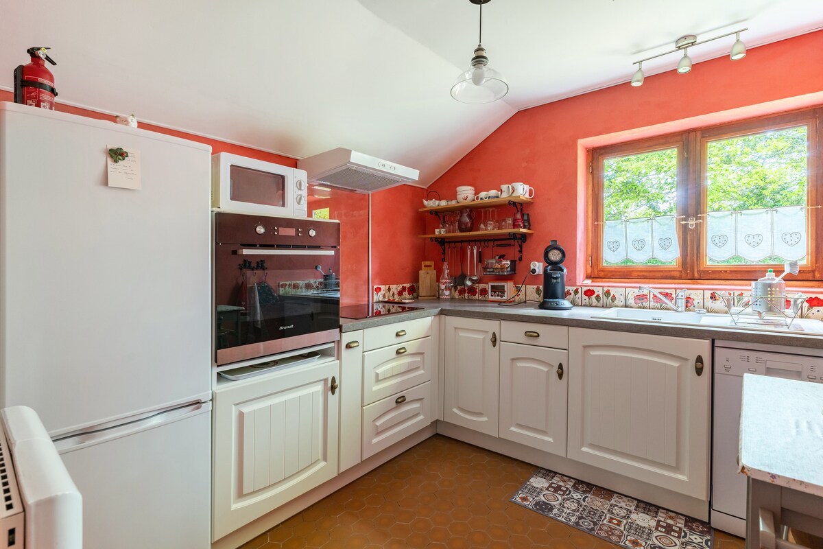 Velkommen til Grotte du Moulin. Denne naturlige loftet er innfelt i en kalksteinshaug og vil overraske deg med sin åpenhet. Den består av et stort kjøkken som er åpent til stuen, og et soverom med bad adskilt av en skyvedør. På soverommet har du en dobbeltseng (160 cm) og i stuen en enkeltseng (90 cm) med en sovesofa som ikke kan brukes som en liten enkeltseng.