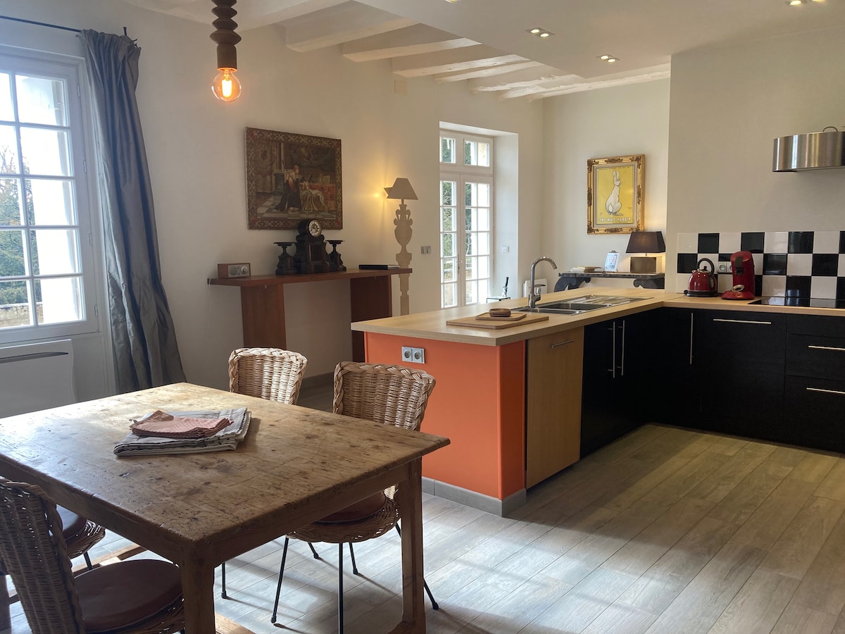 Slapp av i denne rolige og elegante 55 m2 boligen, renovert i en vakker bygning fra 1860-tallet. 14 km fra Beauval dyrehage og noen skritt fra alle fasiliteter. Du vil ha tilgang på nødvendig sengetøy, en Senseo, en vannkoker, en mikrobølgeovn, en TV og en grill (kull må tas med). Minibar og noen godbiter i tillegg i tillegg i tillegg i tillegg 😉