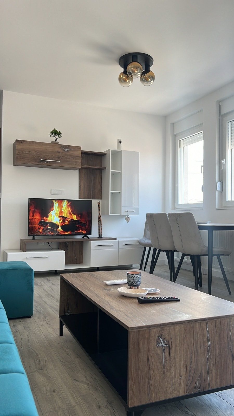 Velkommen til den sjarmerende, lyse leiligheten vår i Novi Sad, perfekt for par eller alenereisende som leter etter et komfortabelt og praktisk opphold. Den splitter nye, fullt utstyrte leiligheten vår ligger bare 20 minutters gange fra sentrum. Leiligheten ligger rett overfor Hotel Sheraton, hvor du finner mange kafeer, restauranter, sykkelutleie og til og med noen små attraksjoner.