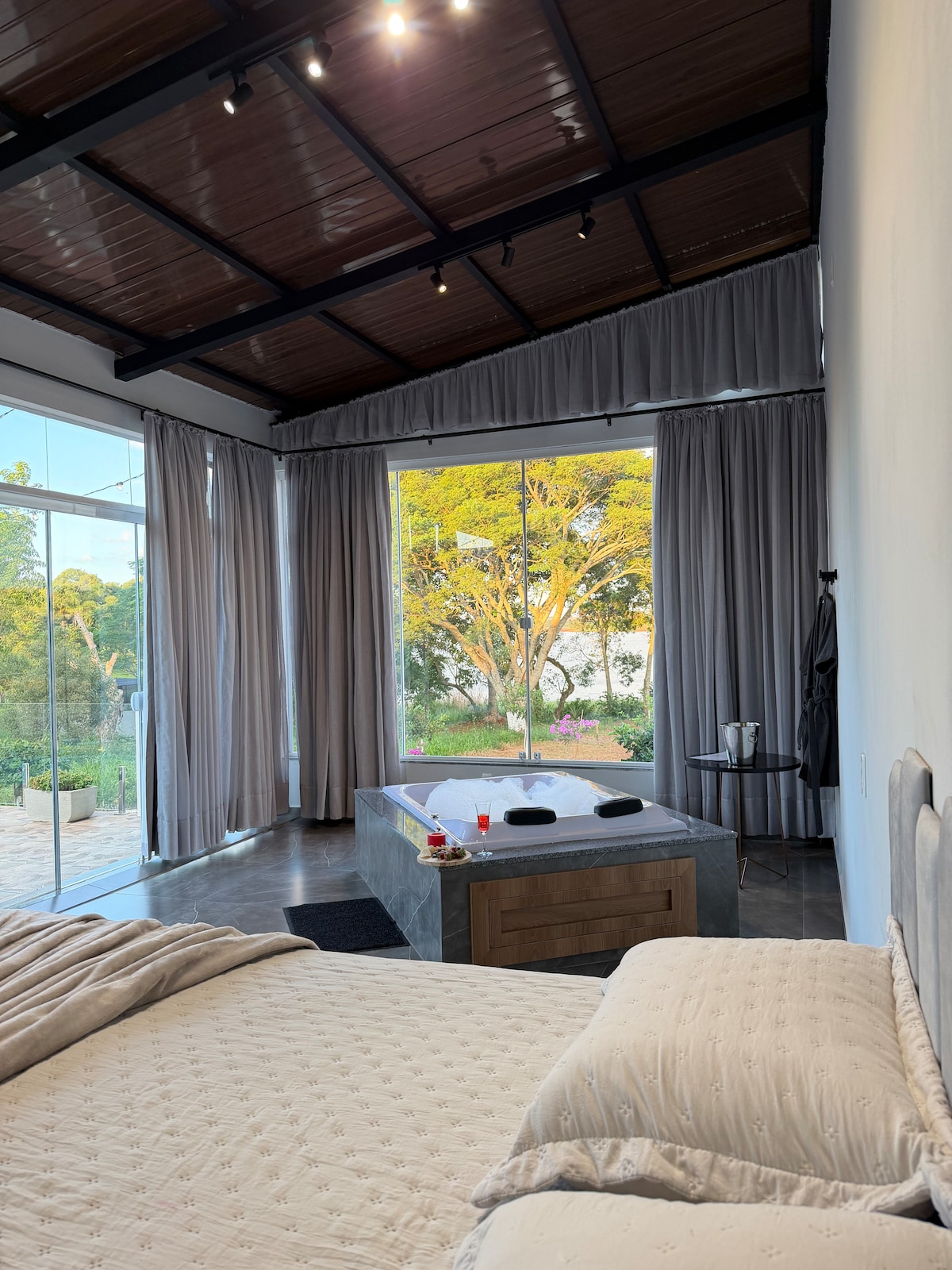 Eksklusiv hytte midt i skogen, med utrolig utsikt over dalen og uforglemmelig solnedgang. Den store forskjellen er boblebadet med panoramautsikt, omgitt av glass, i helt private omgivelser. Den har en stor terrasse, grill og hengekøye. Hytta er 100 % klimatisert, har kjøkken med grunnleggende utstyr og et soverom i andre etasje med nydelig utsikt. Ideell for de som søker komfort, natur og fullstendig privatliv.