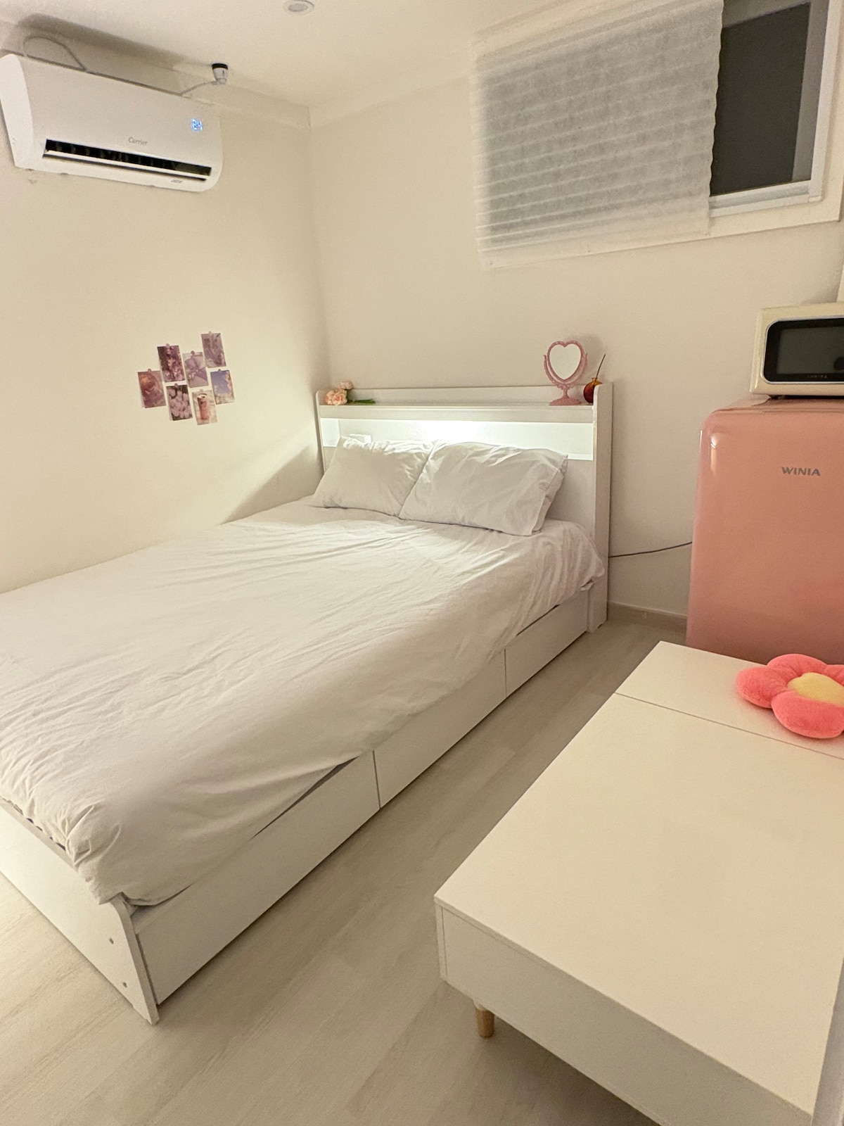 Dette er et deluxe-rom med et avslappet sted og stilig interiør. Den romslige romstørrelsen og tilføyelsen av sensoriske rekvisitter kompletterer den luksuriøse atmosfæren, og du kan oppleve en spesiell hvile bare ved å bo der. Du kan se på Netflix gratis gjennom projektoren. Ulike andre OTT-tjenester er også tilgjengelige for å gjøre din private tid enda mer omfattende. < Ting som er klargjort på rommet > – queensize-seng (grundig sengetøyhåndtering hver dag) – projektor (gratis Netflix-visning) – individuelt klimaanlegg (temperaturen kan justeres med fjernkontroll) – TRÅDLØST NETTVERK (kan kobles til direkte med QR-kode). – kompakt kjøleskap (to flasker vann inkludert) – to bord og to stoler for to personer – type-C-mobillader – belysning (fargebelysning og indirekte sengebelysning som passer konseptet) <Baderomsfasiliteter> - sjampo/balsam/dusjsåpe - skumrengjøring - håndvask -hårtørker – tannbørste/tannkrem/barberhøvel