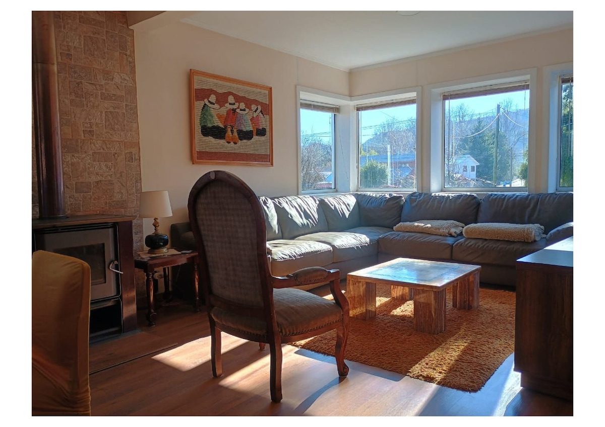 A orilla del río Ñuble, con una vista increíble, en 5.000 metros y bosque. La casa elegante, espaciosa y equipada te harán pasar unos días increíbles. El exterior, con piscina inmersa en el bosque hace una experiencia única. Toda esta maravilla a solo 7 minutos de pueblo, donde encuentras supermercados, tiendas, farmacia, artesanía, restaurantes, atención de Salud, etc. También puedes disfrutar de rafting, kayak, trekking, cabalgatas y mucho más !
