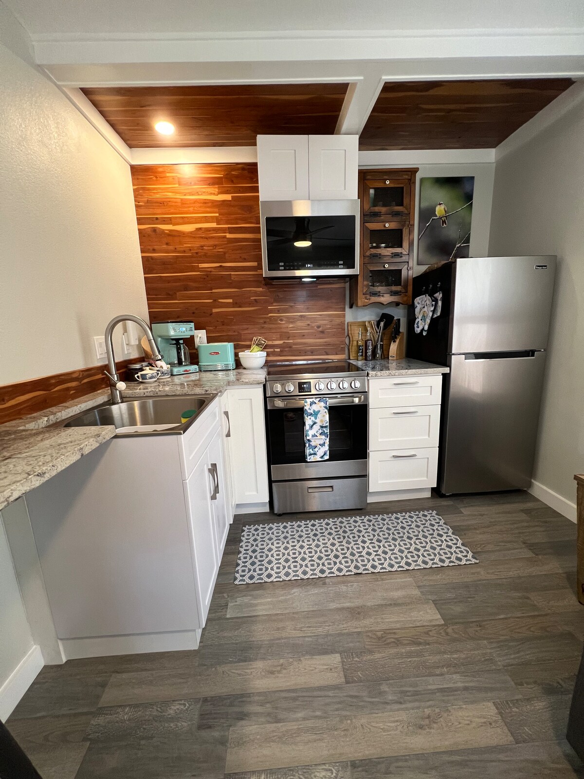Velkommen til ditt hjem hjemmefra! Denne romslige ferien med tre soverom og to bad tilbyr alle bekvemmelighetene du trenger, inkludert et fullt utstyrt kjøkken, frokostbar, kaffebar og innbydende oppholdsrom. Slapp av på verandaen eller terrassen på baksiden, perfekt for å drikke morgenkaffen eller nyte solnedgangen. Med et praktisk gjesterom, arbeidsplass og koselige detaljer overalt, er dette det ideelle stedet for avslapning og minner!