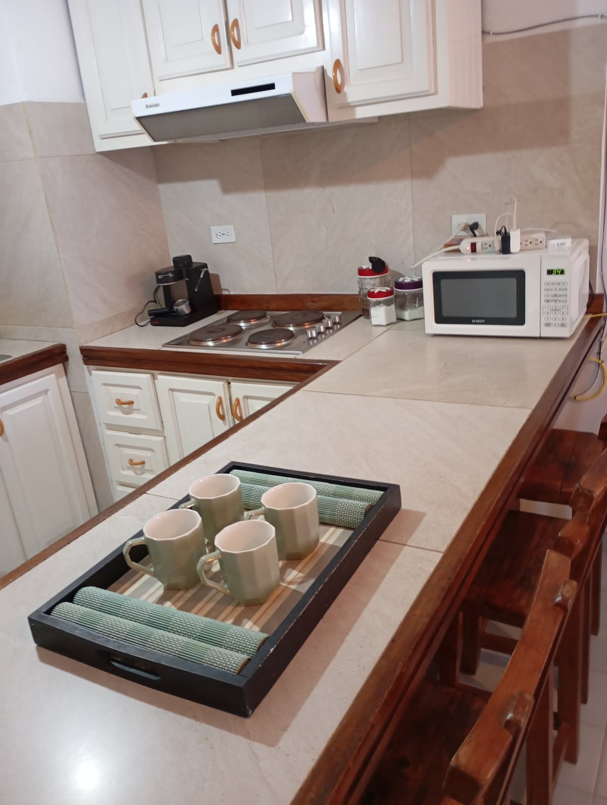 Nyt et opphold uten sidestykke i denne moderne og stilige leiligheten i boligkomplekset Pinamar. Ideelt for fire personer, og kombinerer design, komfort og en førsteklasses beliggenhet. • kjøkken med alt du trenger • Komfortable og ideelle rom for en avslappende hvile • Fellesområder med basseng og grill. • 1100-liters vanntank • sentral A/C Denne leiligheten ligger i nærheten av restauranter og turistattraksjoner i Margarita, og er det ideelle valget for ferien din.