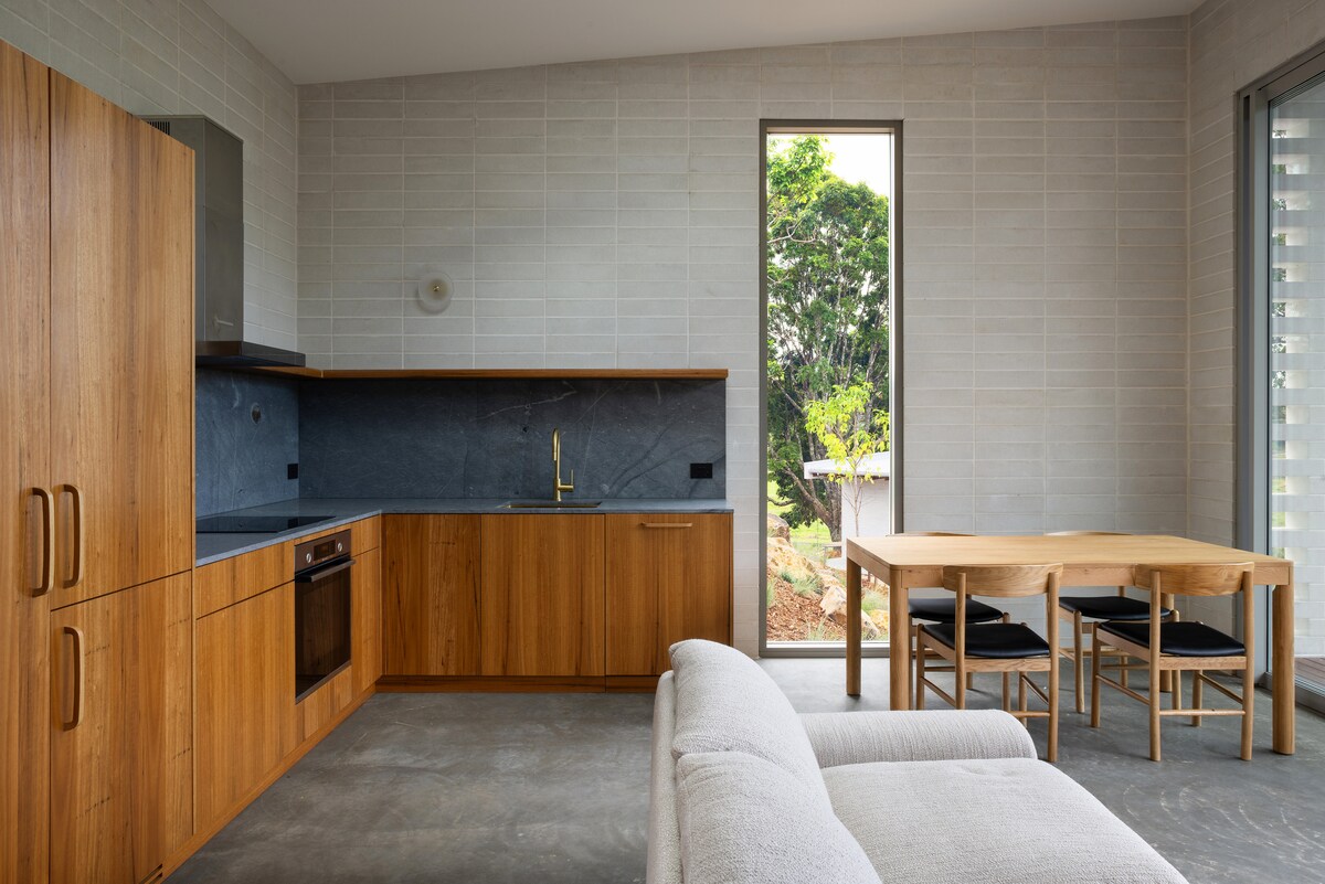 The cottage is designed to sit quietly on its beautiful hillside site, making the very best of its stunning location. Stylishly outfitted, you’ll find a truly relaxing space to unwind and take in the gorgeous vistas of Northern NSW, surrounded by peace and quiet. Guests are welcome to explore our property-as long as you take a carrot or two to share with Bentley, our resident horse. You might even come across a wallaby, an echidna or maybe a goanna! @taliesin_farm