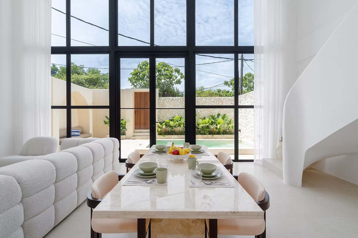 Opplev Balis tropiske sjarm på Kayu Lago Villa, hvor sollyset fyller oppholdsstedet gjennom glasspaneler, og tilbyr beroligende utsikt over bassenget, og milde briser bærer duften av frodig grøntområde. Slapp av ved det private bassenget, nyt kaffe på balkongen eller slapp av med en film på den 50-tommers smart-TV-en. Hvert øyeblikk her blander komfort, stil og et rolig tropisk liv. Dette kan du forvente deg : - privat svømmebasseng med solsenger. - 9 minutter til Bingin Beach