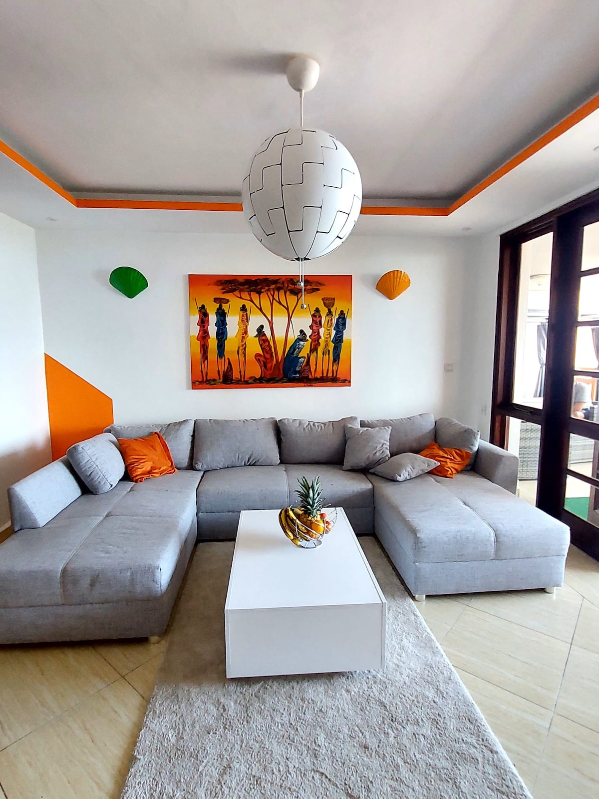 Velkommen til den perfekte kystferien! Denne romslige leiligheten med tre soverom har perfekt beliggenhet på Mt. Kenya Road, overfor det ikoniske Mombasa Beach Hotel og Voyager Hotel, tilbyr deg bekvemmelighet, komfort og fantastisk havutsikt. Beliggenheten er uslåelig, kun tre minutters spasertur til stranden, med enkel tilgang til offentlig transport og Uber rett utenfor eiendommen. Du er også i nærheten av populære kjøpesentre som Nyali Centre og City Mall, samt restauranter og underholdningssteder.