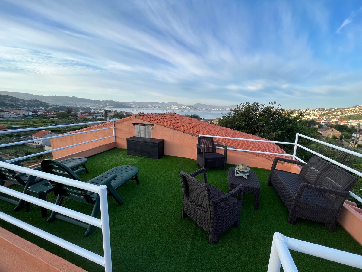Villa Balbina. House from the 70s, completely renovated in 2020, located next to Beluso Beach, A Roiba Beach, and marina. If what you are looking for is a comfortable, calm, coastal decorated spot with amazing views of the ocean, this place is for you! The house is perfect for four people as it has two bedrooms, one with a double bed and the other with two twin beds. Wifi is included.