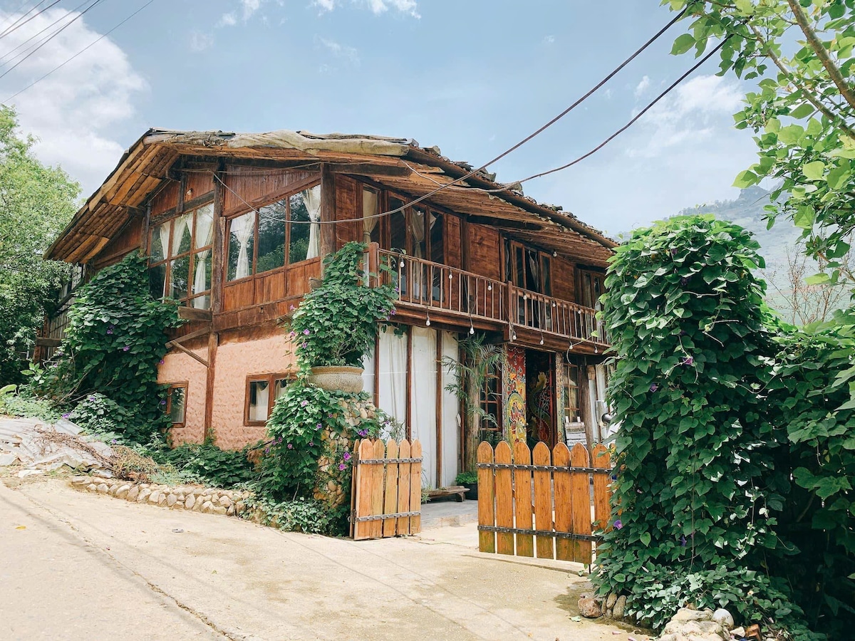 🏡La Maison er en samling av hjem og bungalower gjenoppbygd fra 100 år gamle tradisjonelle H'mong-hus, redesignet med moderne bekvemmeligheter samtidig som den rike kulturen til høylandets etniske folk er bevart.🌿 Ingen basseng, ingen TV, ingen klimaanlegg, men alltid varmt vann, internett og varme tepper. Enkle, vakre øyeblikk som markblomster og følelsen av å berøre de grønne fjellene.🌿 📍 8 km fra Sapa, 30 minutter med taxi. 🏡 Fredelig, naturlig, med naboer fra etniske minoriteter. 🐕 Hunder, katter og kyllinger går rundt.