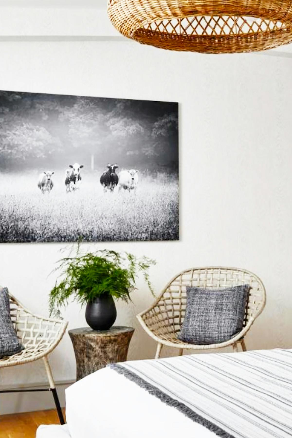 Located in the same building as our fifteen Village King Suites at the back of the property near the pond, this more affordable room in the desirable “village” area of the property features a plush king bed, a private bath with walk-in shower, two sitting chairs. Other features include a 43" Smart TV, a mini-fridge, Bluetooth radio, USB outlets, individually-controlled AC & heat (window AC units used in the warmer months), free wireless internet access. This room accommodates up to two guests.
