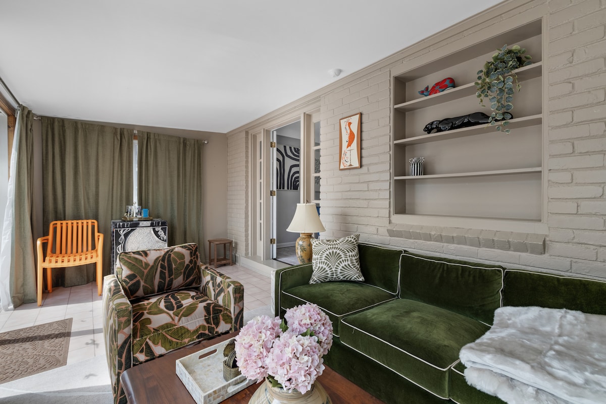 ✨ Moderne luksusferie! ✨ Slapp av i boblebadet året rundt, samle dere rundt propanbålpannen eller nyt biljardbordet og spillrommet! Beliggende i nærheten av sentrum av Ferndale og Royal Oak, med rask tilgang til restauranter, barer og Detroit Zoo. Gjester kan spørre om massasjetjenester i hjemmet eller en privat kokk. Projektoren er tilgjengelig for leie. Fester er ikke tillatt. Bare 15 minutter fra sentrum av Detroit! Ytterligere identitetskontroll kan bli forespurt ved innsjekking.