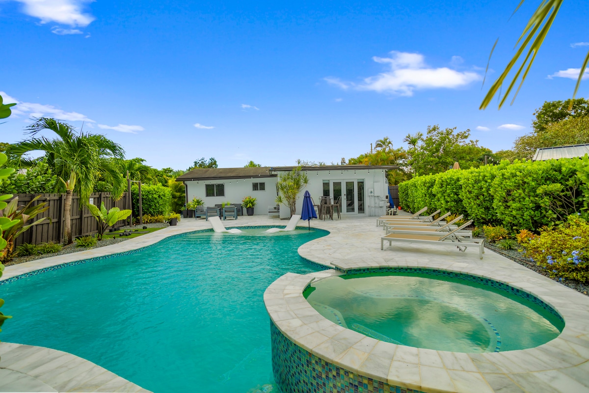 Velkommen til CASA DÉJÀ VU – et kuratert luksusferiested designet for reisende som verdsetter skjønnhet, privatliv og uforglemmelige opphold i Fort Lauderdale. ✔️ 8 min til stranden | 10 min til Las Olas ✔️ Oppvarmet saltvannsbasseng + utendørs boblebad ✔️ Hage med lysthus, grill og solsenger ✔️ 2 senger (king + queen), raskt trådløst nettverk ✔️ Fullt utstyrt kjøkken + smart-TV ✔️ Gratis sykler og strandutstyr ✔️ Stille og trygt nabolag ✔️ Parkering uten ekstra kostnad + verter døgnet rundt