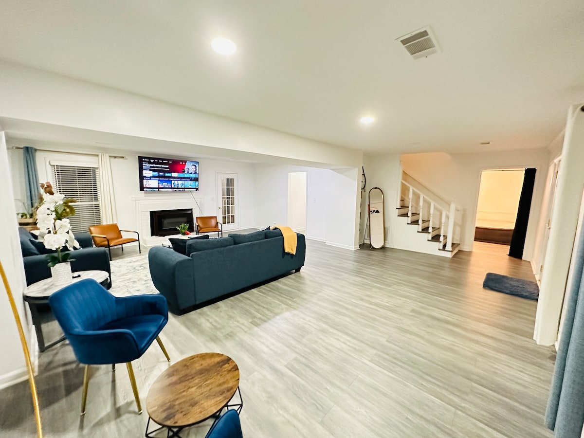 Nyt en stilig opplevelse i dette huset som ligger ved Lanier-innsjøen! Northeast Georgia Hospital ligger i nærheten, det er mange restauranter i området, og det er omgitt av et trygt nabolag. Dette nydelige huset med utsikt mot innsjøen fra stuen inviterer deg til å nyte romantiske kvelder i en fredelig atmosfære og slappe av i massasjestolen, ved peisen og med 65-tommers TV-er. Du har muligheten til å bo i et skinnende rent og koselig hus til en rimelig pris. Kom tilbake og slapp av på dette rolige, stilige stedet!