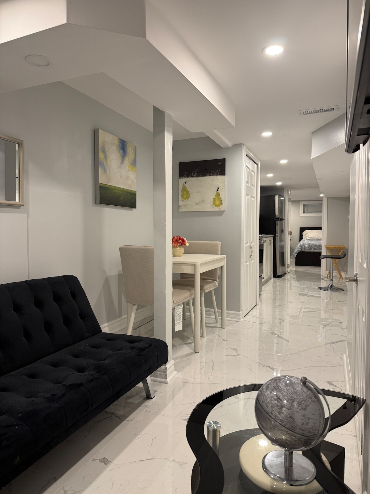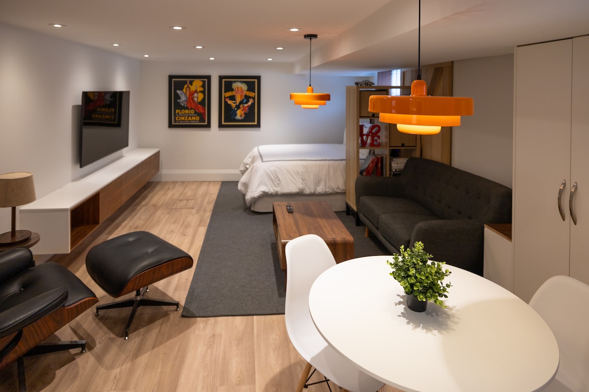 Lys, ren og romslig gjestesuite i nedre etasje i Midtowns trendy St. Clair West-nabolaget. Suiten vår egner seg best for voksne som ønsker å utforske byen og se severdighetene, forretningsreisende som ønsker privatliv og et komfortabelt arbeidsområde eller familier som besøker slektninger. Vi tilbyr fasilitetene du trenger, og noen du ikke forventer. Mid-mod-inspirert soverom med queensize-seng gjør det til et flott sted å hvile hodet etter å ha besøkt en av våre mange trendy lokale restauranter.