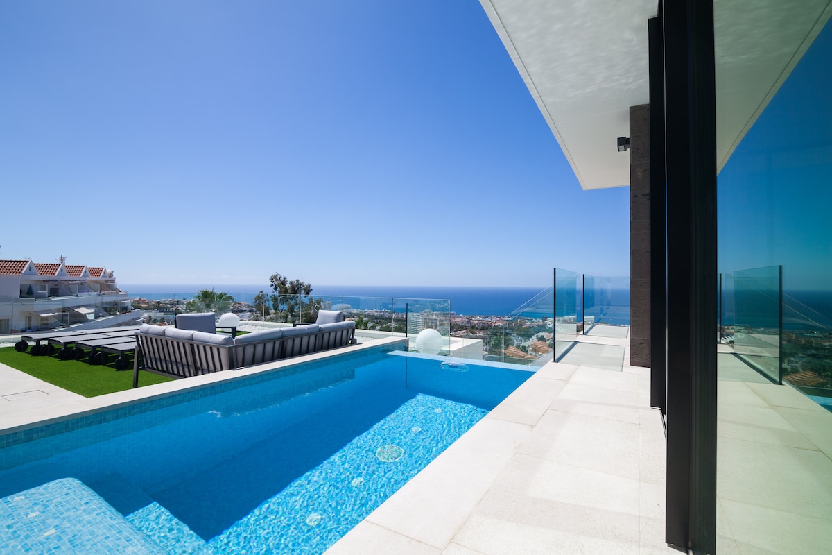 Luksus 200 m NY villa E med oppvarmet basseng, havutsikt