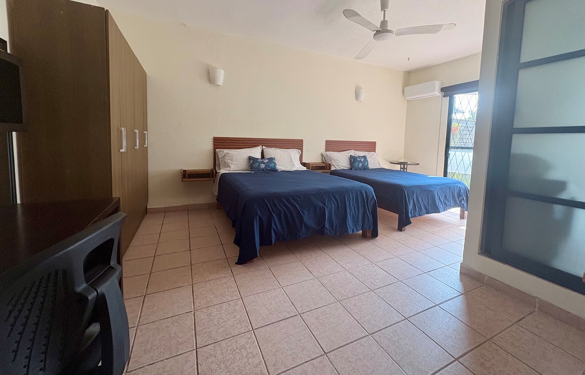 Det er en frisk, romslig leilighet (40 m2) med naturlig lys. Konstruksjonen er sammensatt av 60% betong og 40% tre. Du kan nyte en pause fra balkongen og sette pris på naturen. Fordi det er et tropisk sted, er vannet i dusjen varmt om dagen. Leiligheten ligger i en veldig rolig koloni og ligger 10 minutters gange fra Playa del Amor, det er også 5 minutter fra en klippe hvor du kan sette pris på havet.