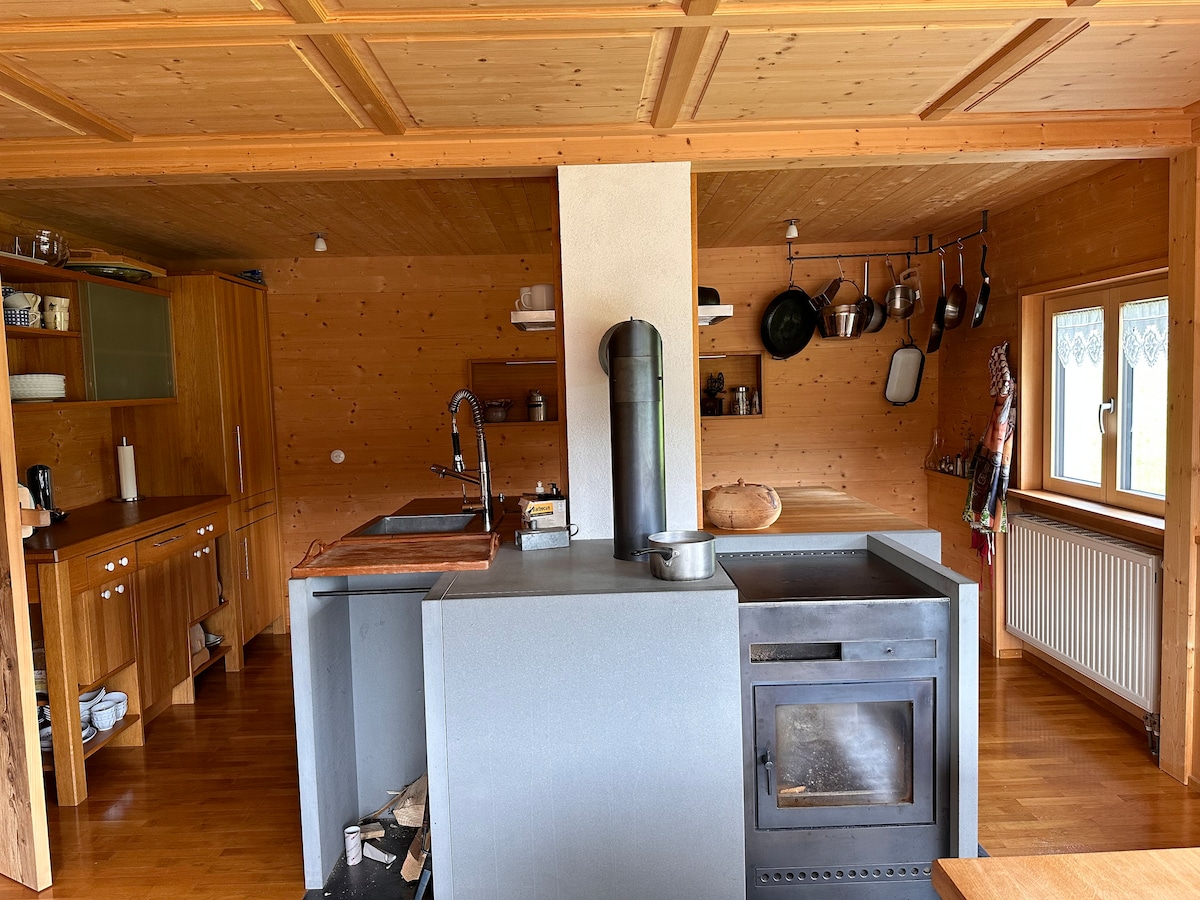 Vi tilbyr et helt spesielt trehus med tønnebadstue rett ved inngangen til Allgäu. Sentralt plassert for å ta mange turer eller bare tilbringe noen fine dager i et bærekraftig bygget og møblert hus. Her blir ingen ønsker uoppfylt! Topputstyrt Bulthaup-kjøkken, stort massivt eiketre-bord i sentrum. På terrassen venter en kullgrill på å bli tent, og i den store hagen får trampolinen og bålet hjertene til å slå raskere.