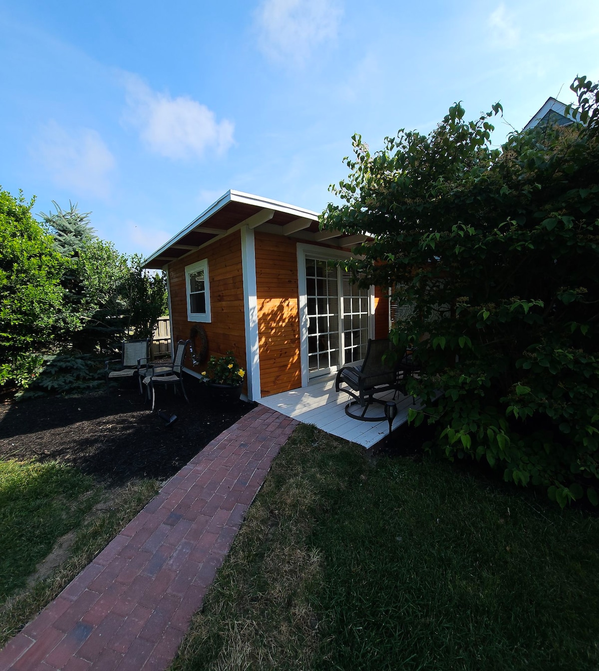 Dette private rommet er lite, enkelt og rustikt. Den ligger på baksiden av eiendommen og tilbyr en komfortabel queensize-seng, klimaanlegg, liten varmeovn, elektrisk teppe, minikjøleskap, kaffetrakter, toalett på rommet, utendørs dusj og vask med varmt vann, privat terrasse, rent sengetøy og håndklær. Bakgården deles med andre gjester, og har flere sitteplasser og skorstein med ved. Bethany Beach ligger ti minutters kjøring unna, Ocean City (145th Street) ligger 20 minutters kjøring unna, Rehoboth ligger 25 minutters kjøring unna. Strandstoler tilgjengelig. TY.