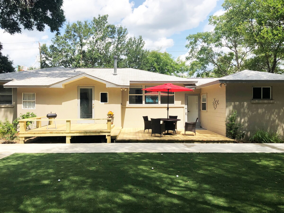 Velkommen til den perfekte ferien, bare fem minutter fra stranden, med shopping og spisesteder ved vannkanten rett utenfor døren. Slapp av i denne sjarmerende strandbyen som er perfekt for underholdning med en utendørs terrasse utstyrt med grill, TV og bålplass. Utforsk Fort Walton Beachs pulserende shoppingmiljø, nyt lokale smaker på nærliggende restauranter, natteliv etter mørkets frembrudd og kom tilbake for å slappe av med stil. Alt du trenger ligger i nærheten. Bestill nå for en uforglemmelig ferie ved kysten!
