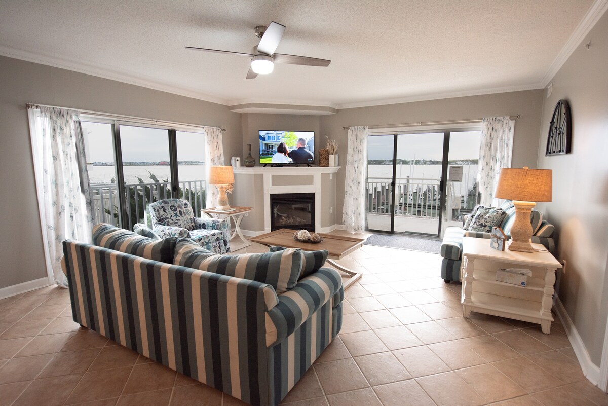 Luxury 4BR bayfront townhouse in Ocean City, MD. Enjoy stunning sunsets from the private deck, fish or catch Maryland blue crabs from your private pier, and unwind in beautifully designed spaces. King beds for every couple, custom bunks for kids, plus a full arcade game room, premium ping pong, fitness room, and hidden Harry Potter room. Just minutes from the beach in a private bayside location. Your unforgettable waterfront escape awaits.