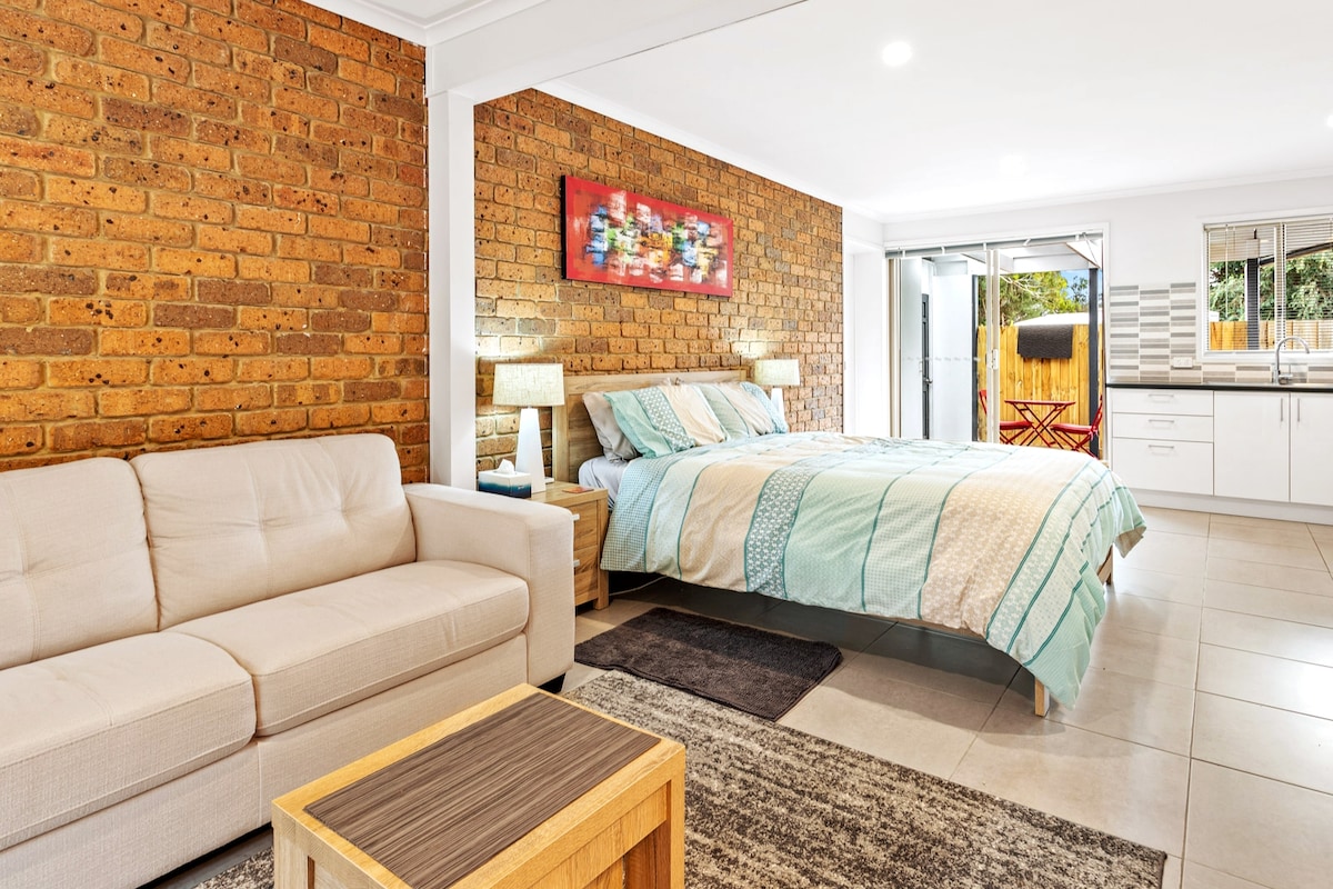 Noen ganger er alt du trenger en base å utforske fra og et trygt sted for hunden å sove. Gå inn i «Studio Kelp», det perfekte stedet å hvile etter en lang dag på vingårdene, stranden eller surfing! Studio Kelp passer perfekt for enslige eller par. Et flott utgangspunkt for det beste av Bellarine. Gå til hundestranden eller langs Point Lonsdale-stranden til kaféer og butikker, eller ri på en bølge på Lonnie Back Beach. Helt privat, selvstendig og kjæledyrvennlig. Lading av elbil er tilgjengelig.