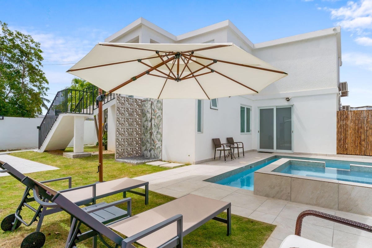 Wake up in a luxurious king bed with premium bedding, gazing out at your private pool framed by lush palm trees. Start the day with breakfast from the fully equipped kitchen, then catch up online with blazing-fast Wi-Fi under the shaded pergola. Cool off in the pool or rinse in the outdoor hot shower before walking just 50 yards to San Juan’s best beach. Ideal for couples, solo travelers, remote workers, or small families seeking comfort and style.