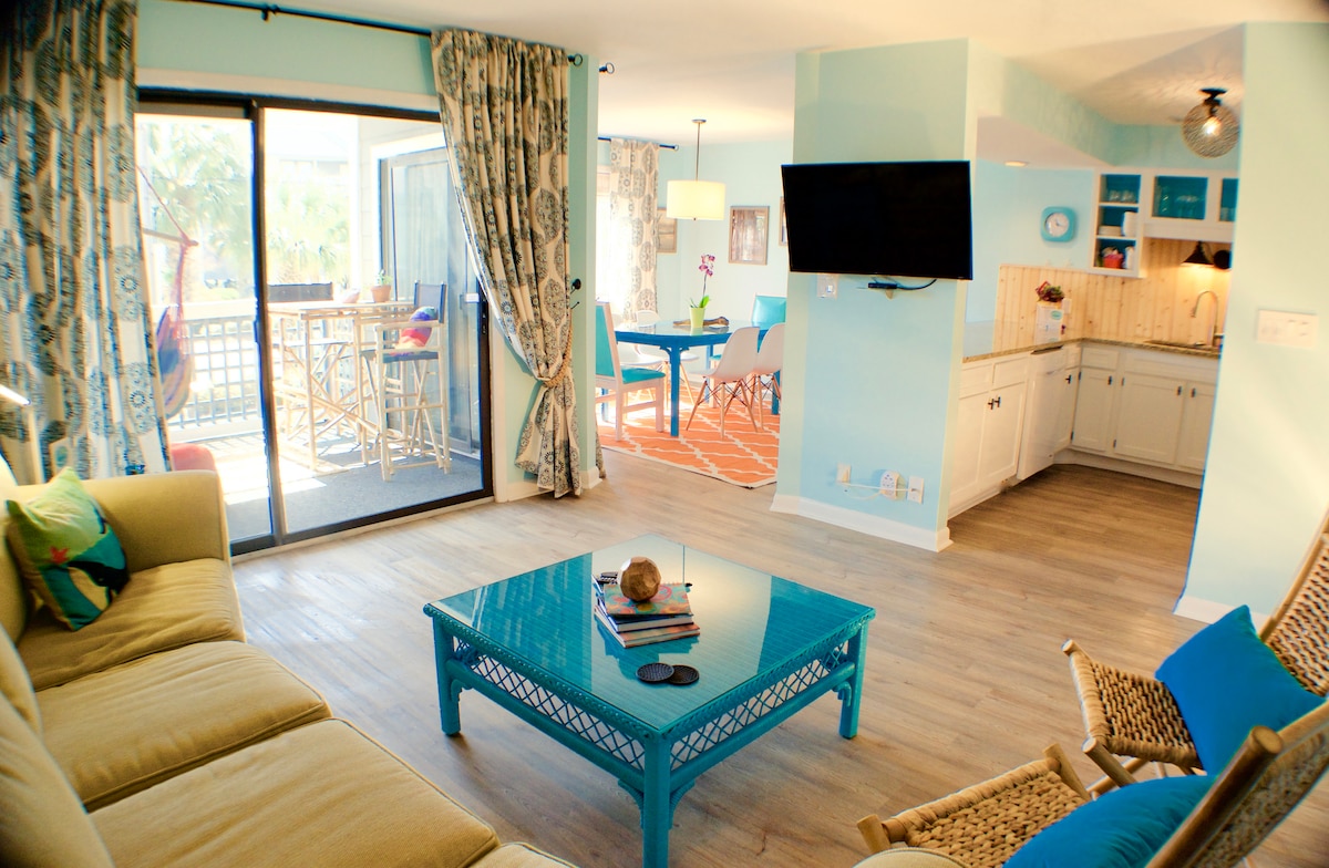 En strandparadis som ligger i et inngjerdet golfbilfellesskap ved stranden. Våkn opp til havbrisen, salt luft og varm solskinn. Ligger bare noen minutter fra havet. Moderne, vakkert møblert med alle hjemmets bekvemmeligheter. To senger, to bad og fullt utstyrt kjøkken. Inngjerdet i bakgården. Oceanside Village har en helt ny spraypark for barn, innendørs og utendørs bassenger, tennisbaner, treningssenter, hundepark, innsjøer for fiske, lekeplass for barn, softballbane, basketballbane og mer.
