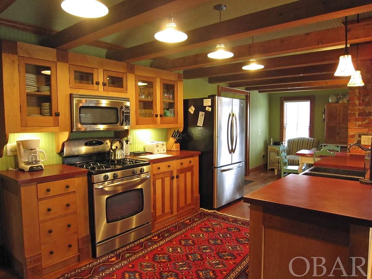 Open and airy feel to this home. Spacious rooms, sparking Gourmet Kitchen perfect for one or many cooks. Four Porches and Sundecks. One screened in porch. The views of the sky at night are remarkable. Fenced in rear yard with outdoor shower and outside sink prep area. The upper level has the great room with soaring ceilings, large living space with cozy furniture, half bathroom, card/game table, bonus room could be used as fourth bedroom with sofa-bed.