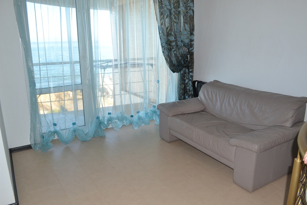 VIP hytte i 1. linje fra havet. Moderne renovering, 1 etasje kjøkkenstudio-stue med en stor sofa, oppvaskmaskin, TV-plasma, dusj, trapp med stue fører til et lekerom med en svensk vegg. 2 etasje: 2 separate soverom med 2 soverom, 2 garderober, et stort bad med et hjørnebad. Stor terrasse med havpanorama. 3. etasje: stort soverom med to senger, balkong med havpanorama. På hagen er det et svømmebasseng (oppvarmet). Nær en liten strand, 150 UAH med 1 person