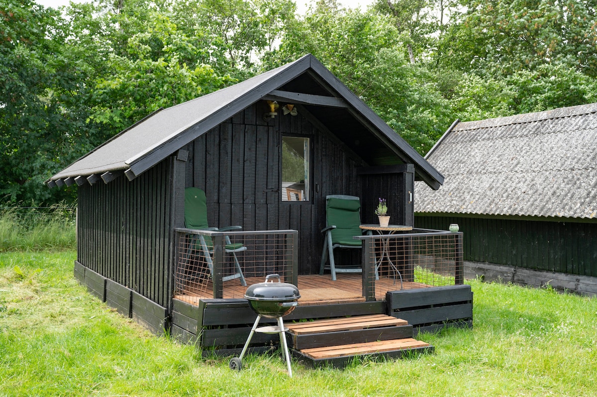 Nyt roen i dette stilige og hyggelig innredede sommerhuset fra 2020, hvor naturen bys inn gjennom de store vinduene. Den 1700 kvm store, solrike tomten med bålplass, nedfelt trampoline, loungeområde, gassgrill og kald utendørs dusj er for det meste omgitt av høye trær. Du bor ca. 100 m fra skogen og 400 m fra demningen ved Korevlerne, hvorfra du kan ta turen over den 400 m lange broen til Ellinge Strand, som er barnevennlig og har det klareste vannet. Avstand fra hus til strand, ca. 1000 m