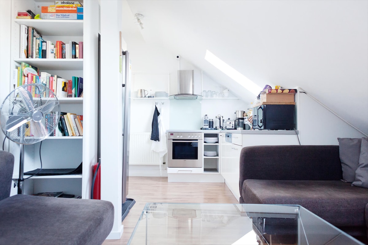 - Ettromsleilighet på 27 kvm/291 kvm. - Ideell for opptil to personer. - dobbeltseng (140 x 200 cm/55 x 79 tommer) - moderne bad med dusj - fullt utstyrt tekjøkken med basisartikler til te og kaffe - tilgang til heis Vær oppmerksom på at det faktiske rommet kan avvike fra bilder.