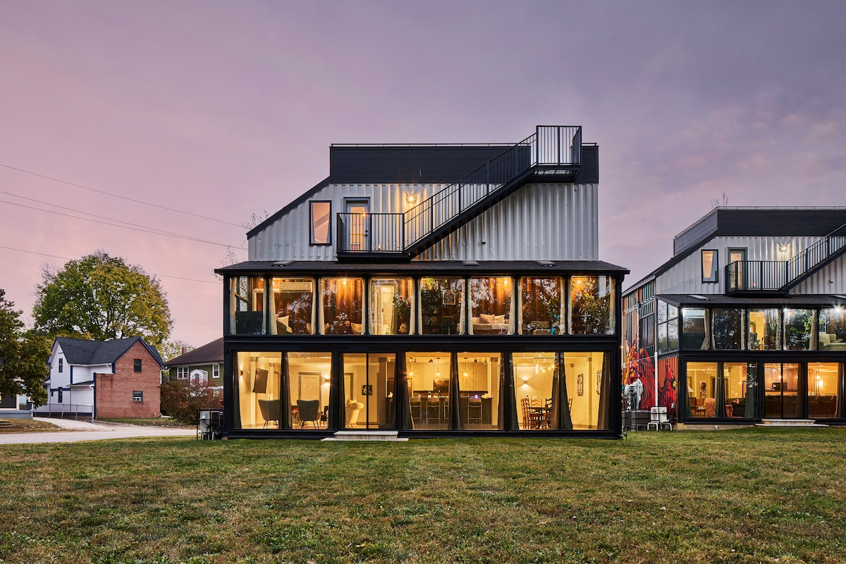 Unikt containerhjem med dobbeltoppholdet av en SUPERHOST. Det ble bygget i 2019 og har 11 fraktcontainerbokser – ni 8 x 20 fots bokser og to 8 x 40 fots bokser. Vi tror det kan være den første dobbelte containerboligen øst for Mississippi-elven, og kanskje unik for USA på den tiden. Containerhjemmet ligger i nærheten av historisk sentrum, Marysville Hospital, Muirfield, Mad River SKI, Nestle's, Scotts og Honda of America. Nyt et komplett kjøkken, to queen size-senger, eget bad og #WFH-skrivebord.