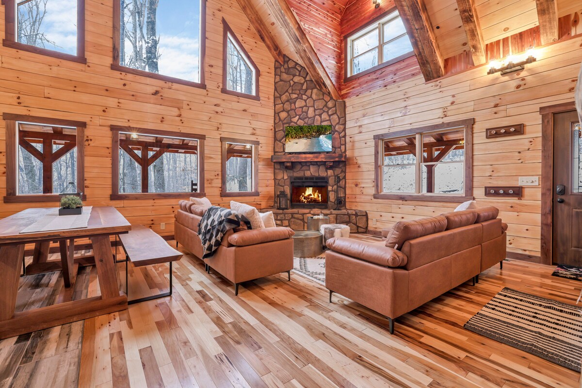 Oppdag Majestic Luxury Lodge, et storslått tilfluktssted på 445 kvm, bortgjemt på seks private hektar i hjertet av Hocking Hills. Denne avsidesliggende luksuseiendommen har utsikt over fjell og skog, en privat kino, boblebad, en halv basketballbane, et spillrom og ekspansive innendørs og utendørs oppholdssteder. Med tre etasjer og plass til å spre seg, er det den perfekte rammen for uforglemmelige gruppeturer, familiesammenkomster og feiringsopphold som krever noe helt spesielt.