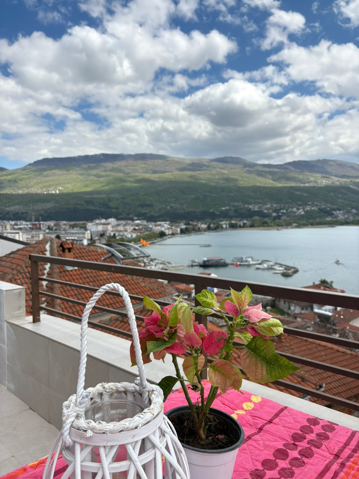 Presenting our home away from home four-bedroom, 3-bathroom house, with a stunning view over the Ohrid Lake, picturesque rooftops, the city square and the mountains. After buying our house in 2019in Ohrid old town we've renovated and decorated it with every attention to detail wanting a house that combined our Scandinavian heritage with the very soul of Ohrid. The property features bespoke handmade furniture with fine wood, granite and marble and wherever possible we've used Macedonian design.