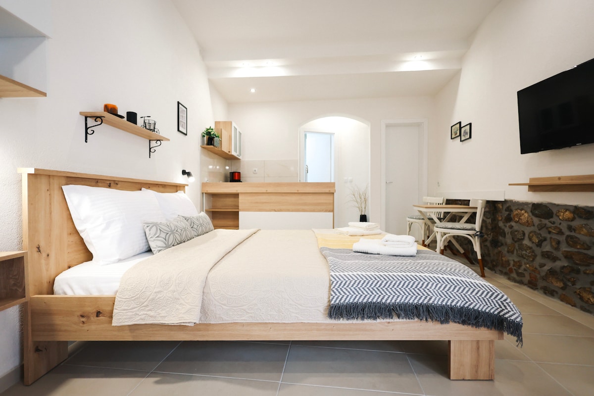 Enjoy a stylish stay in this centrally located studio apartment with lake view and a private patio garden in the heart of Ohrid’s Old Town. Set within a newly restored boutique villa (2022), this hidden gem is tucked away in a charming cobblestone alley, offering both privacy and authentic Old Town atmosphere. This space blends traditional character with modern comfort, making it ideal for couples or solo travelers. Just steps away from the lake, promenade, and all major attractions.
